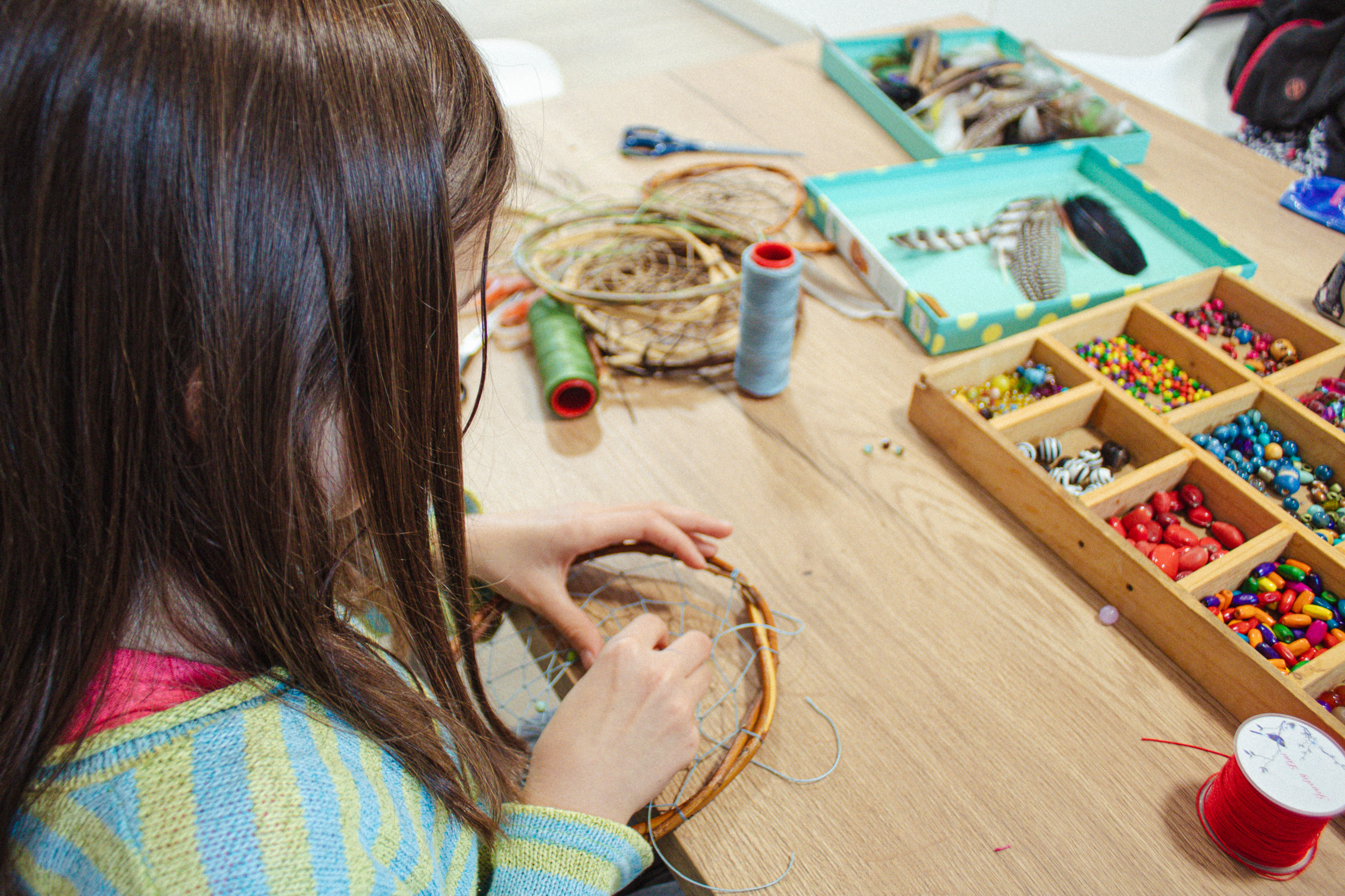 Les enfants imaginent et fabriquent leur propre attrape-rêves à partir de fils, de perles colorées et de plumes. Un atelier poétique pour exprimer sa créativité… et chasser les mauvais esprits !