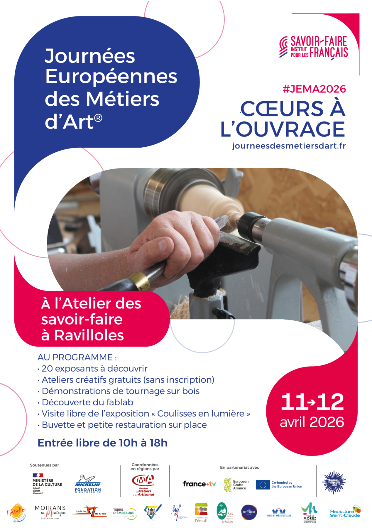 À l’occasion de la 20ᵉ édition des Journées européennes des métiers d’art, dont le thème cette année est « Cœurs à l’ouvrage », l’Atelier des savoir-faire ouvre ses portes gratuitement samedi 11 et dimanche 12 avril 2026, de 10h à 18h.