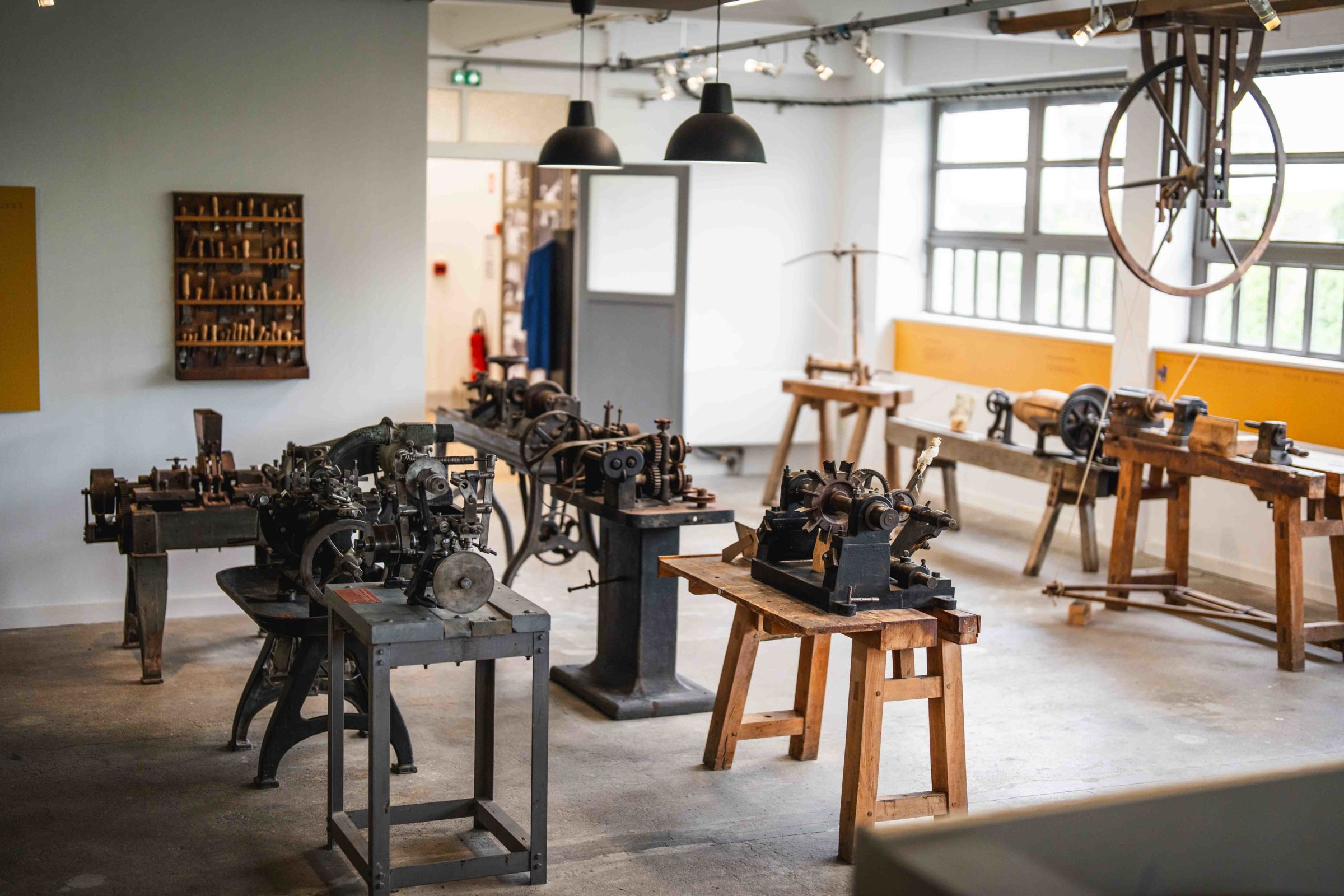 Entre patrimoine et technologie, cette salle expose les outils et machines anciens et modernes du tournage sur bois.